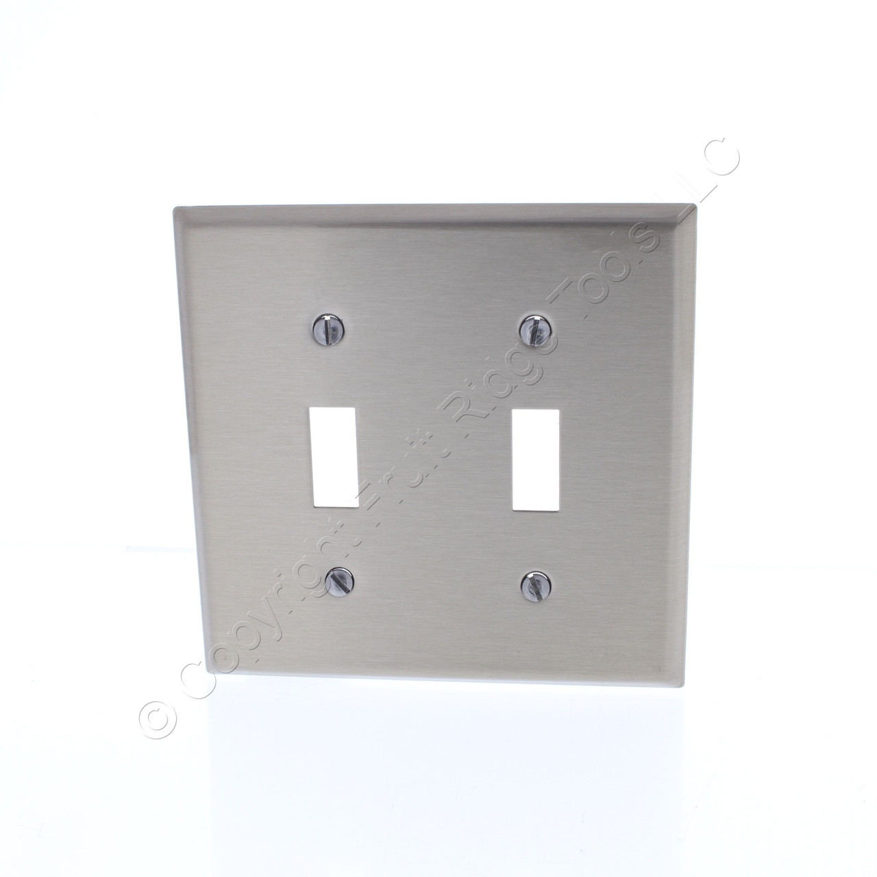 - Cooper ANTIMICROBIAL Stainless Steel 2-Gang Switch Cover Toggle Wallplate Switchplate 93072AM