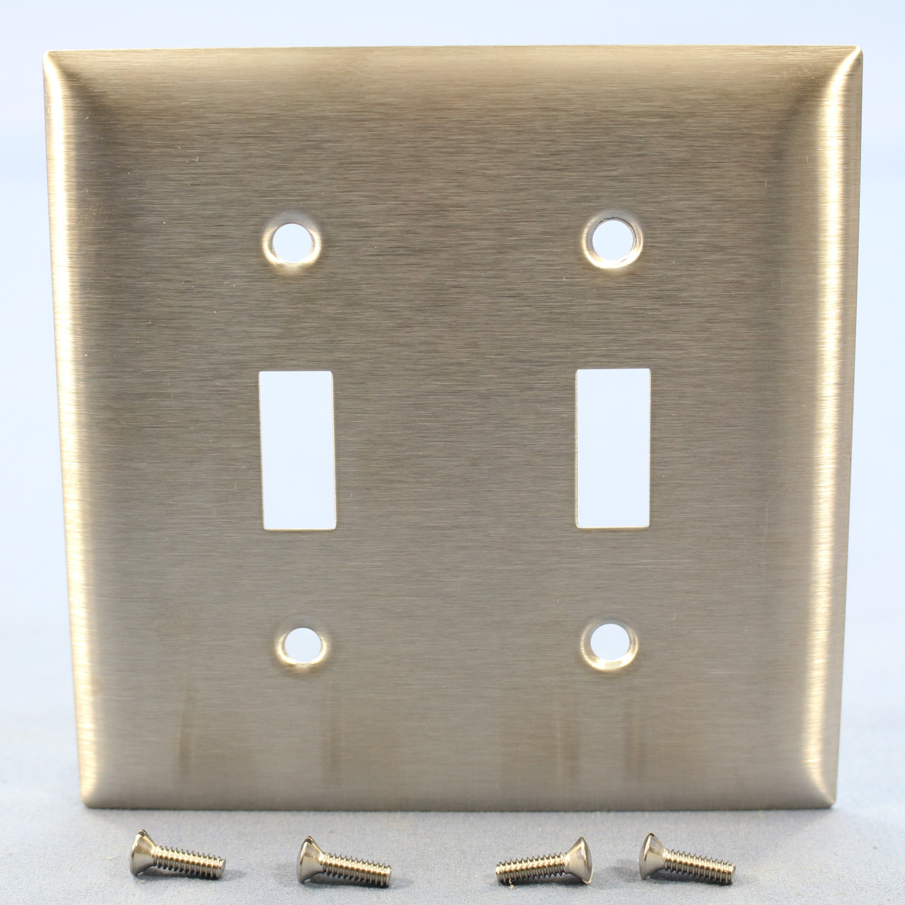 - Hubbell NON-MAGNETIC Stainless Steel 2-Gang Toggle Switch Cover Wallplate SS2