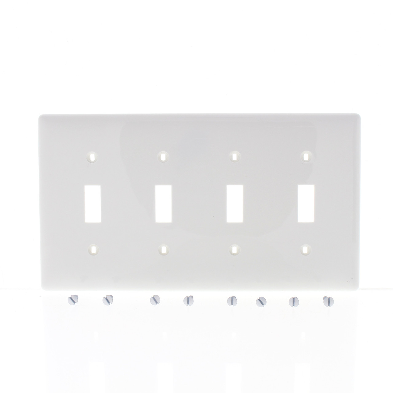 - Hubbell White UNBREAKABLE 4-Gang Toggle Switch Cover Nylon Wallplate Switchplate NP4W