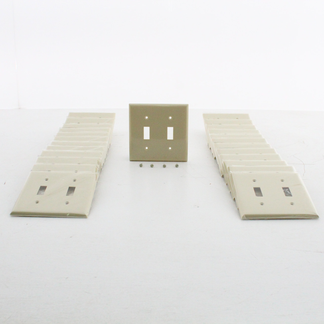 25 Mulberry 34072 ivory 2-gang toggle switch cover plates. Commercial Grade, standard size, measuring 4.5"h x 4.562"w. Made of a high performance unbreakable thermoplastic material - do not confuse this with regular Residential Grade wallplates which can chip or crack. Features include: