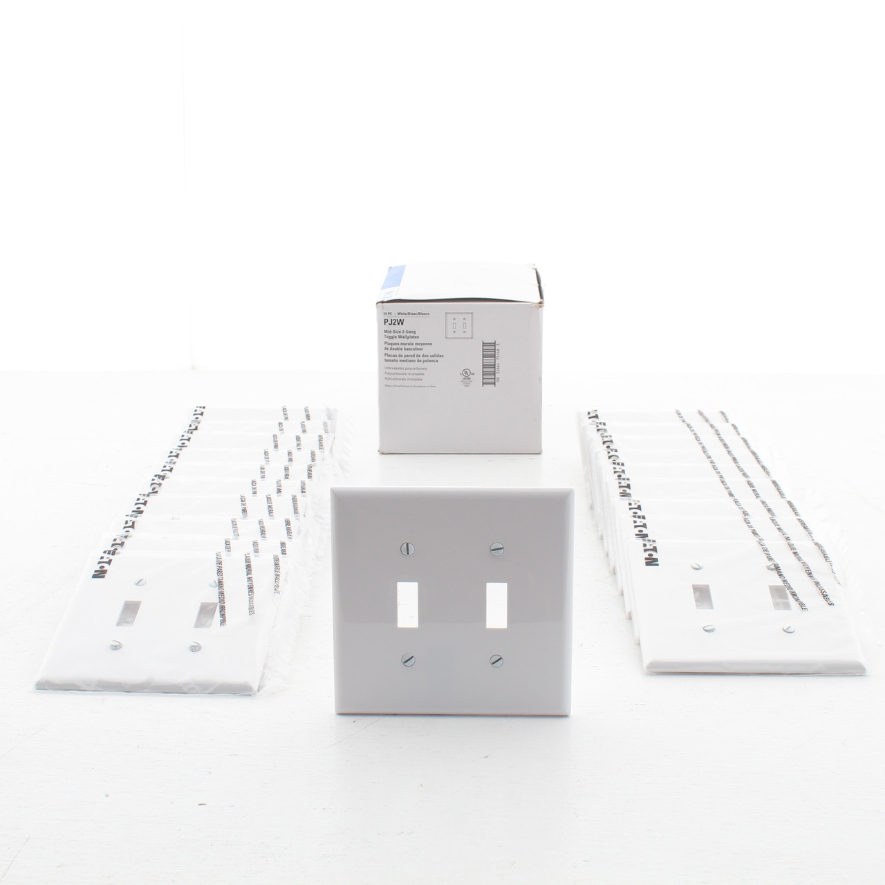 - 20 Eaton White 2-Gang Mid-Size UNBREAKABLE Toggle Switch Cover Wallplates PJ2W