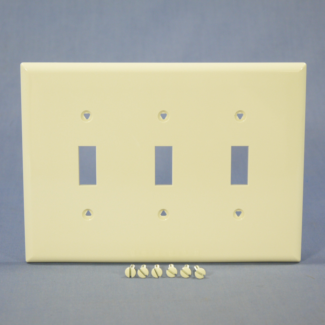 - Cooper Almond 3-Gang Mid-Size UNBREAKABLE Nylon Toggle Switch Cover Wallplate PJ3A