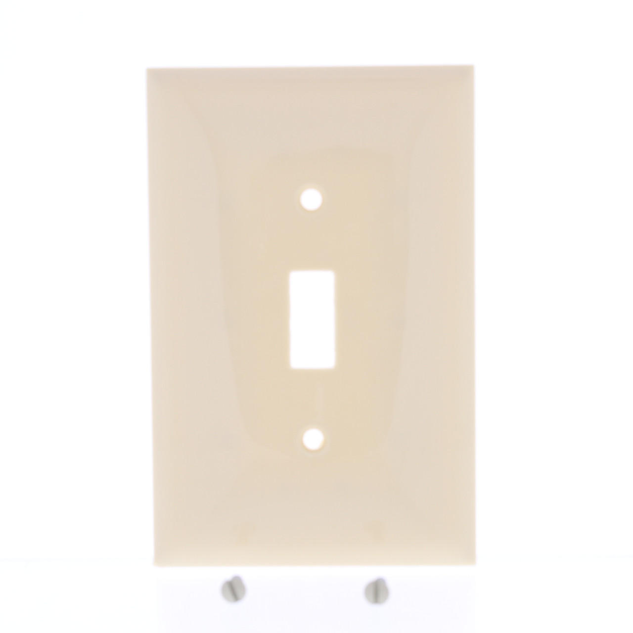 Mulberry 734871 ivory unbreakable single-gang Maxi-size toggle switch wallplate. Commercial Grade, 1-gang plate with one toggle switch opening. Special oversized "Maxi" size plate, measuring 5"h x 3.5"w to provide coverage of wall irregularities. Made of a high performance unbreakable thermoplastic material - do not confuse this with regular Residential Grade wallplates which can chip or crack. Features include: