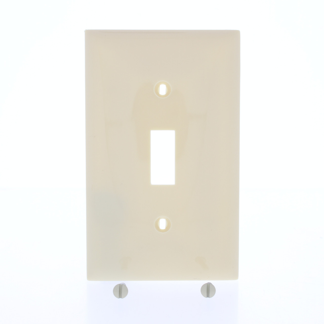 Mulberry 734071 ivory single-gang toggle switch cover plate. Commercial Grade, standard size, measuring 4.5"h x 2.75"w. Made of a high performance unbreakable thermoplastic material - do not confuse this with regular Residential Grade wallplates which can chip or crack. Features include: