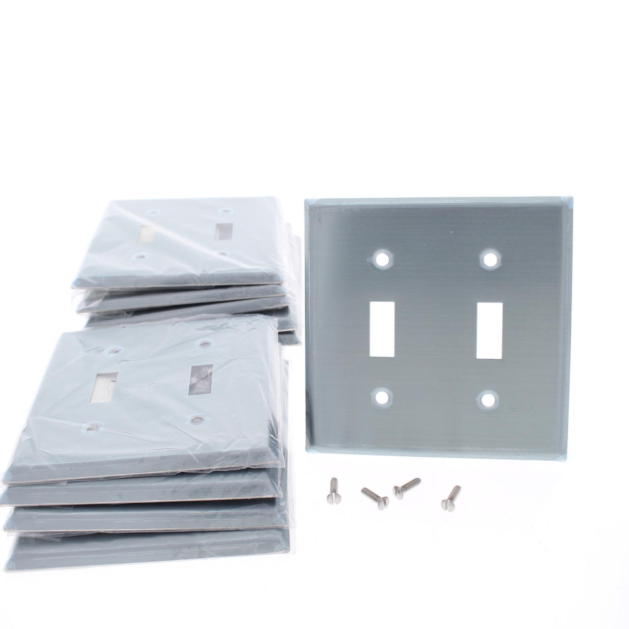 - 10 Eaton NON-MAGNETIC Stainless Steel 2-Gang Toggle Switch Cover Wallplates 93072