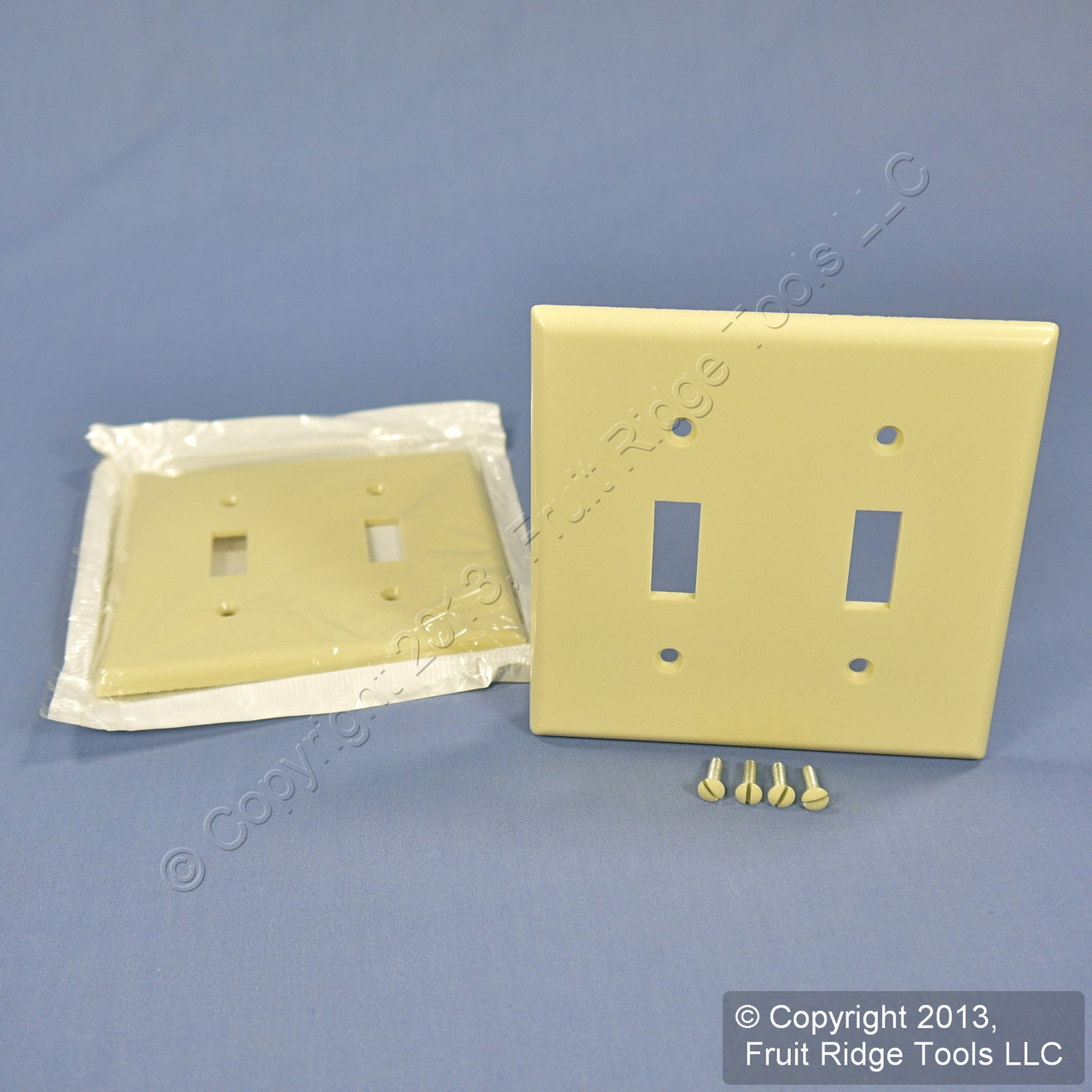 - 2 Leviton Ivory 2-Gang Toggle Switch Cover Wallplate Plastic Switchplates 86009