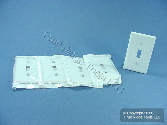 5 Leviton 88001 white toggle switch cover plates. Residential Grade, standard size, measuring 4.5"h x 2.75"w. Features include: