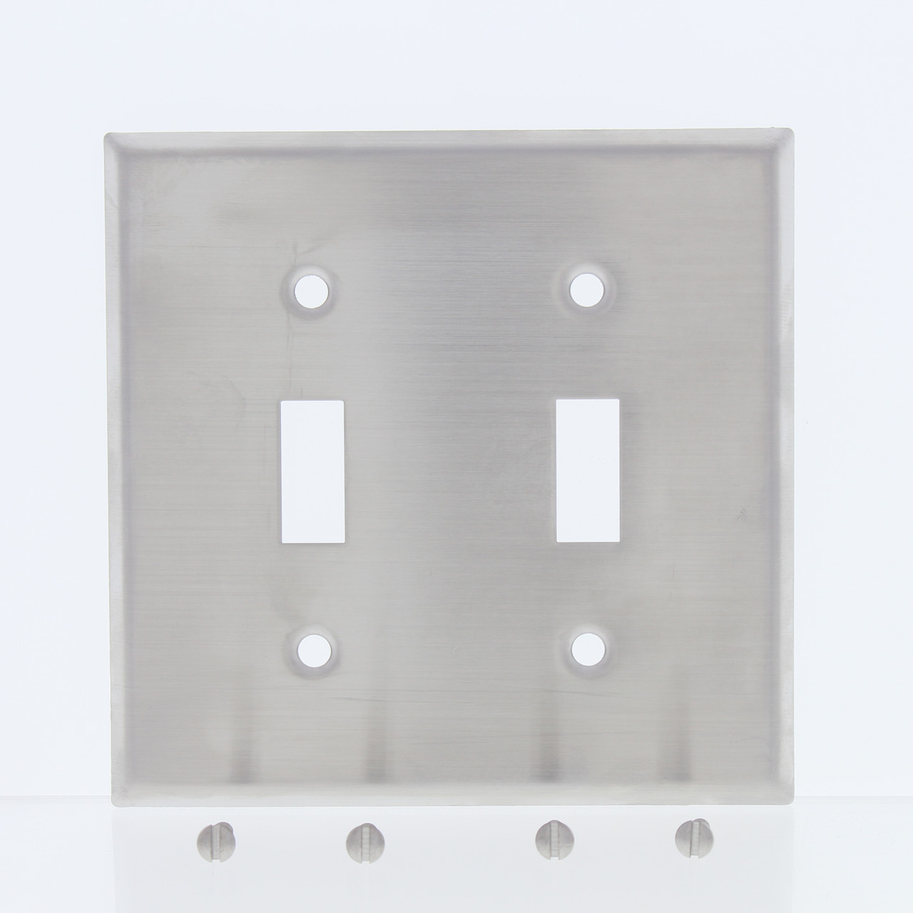 - Eaton NON-MAGNETIC Stainless Steel 2-Gang Toggle Switch Cover Wallplate 93072