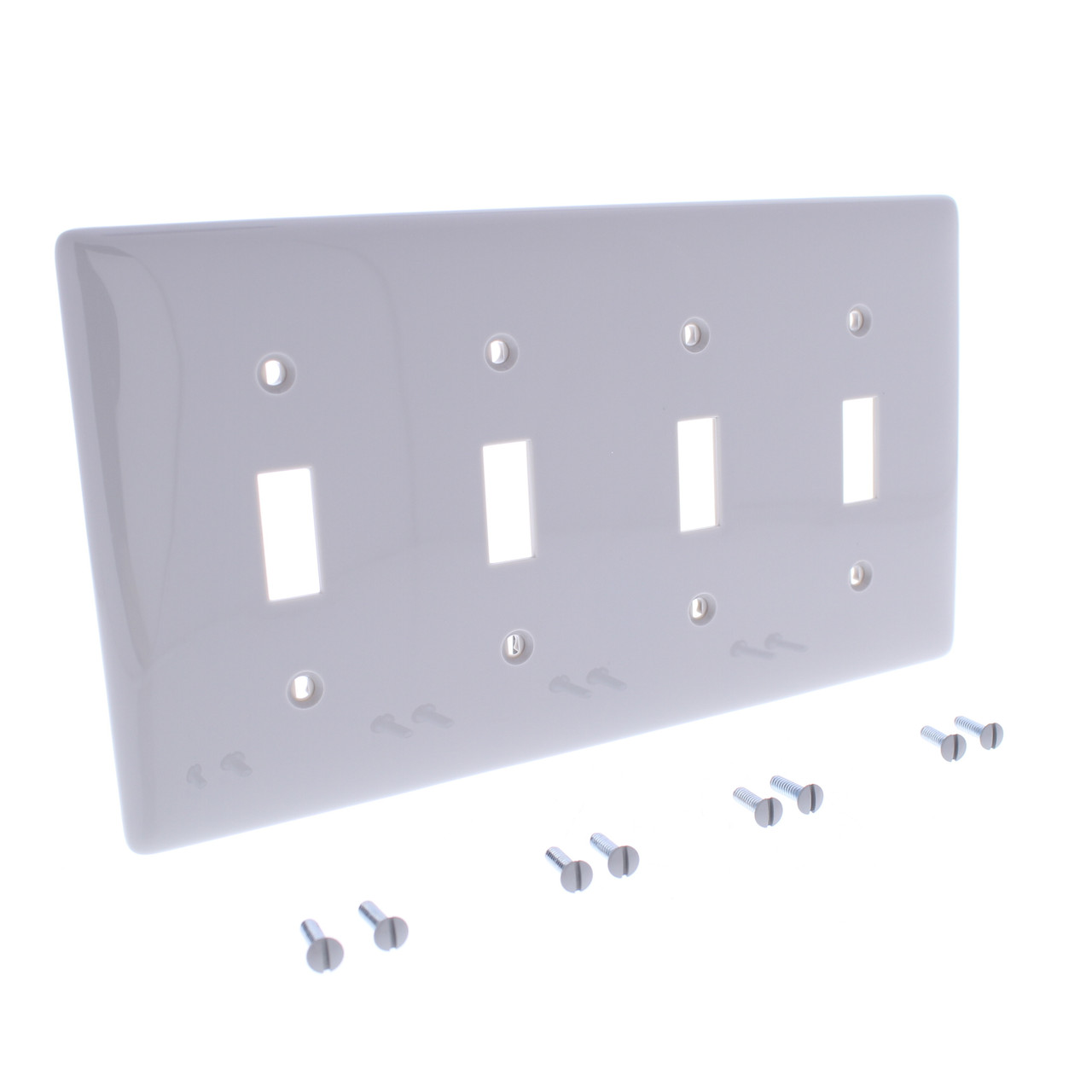- Hubbell Gray UNBREAKABLE 4-Gang Toggle Switch Cover Nylon Wallplate Switchplate NP4GY