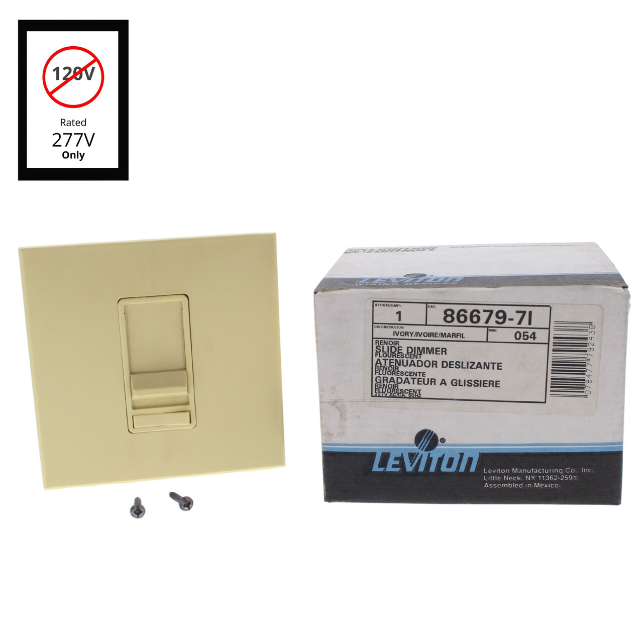 - Leviton Ivory Fluorescent Slide Light Dimmer Switch 8-40 Lamp 277V 86679-7I