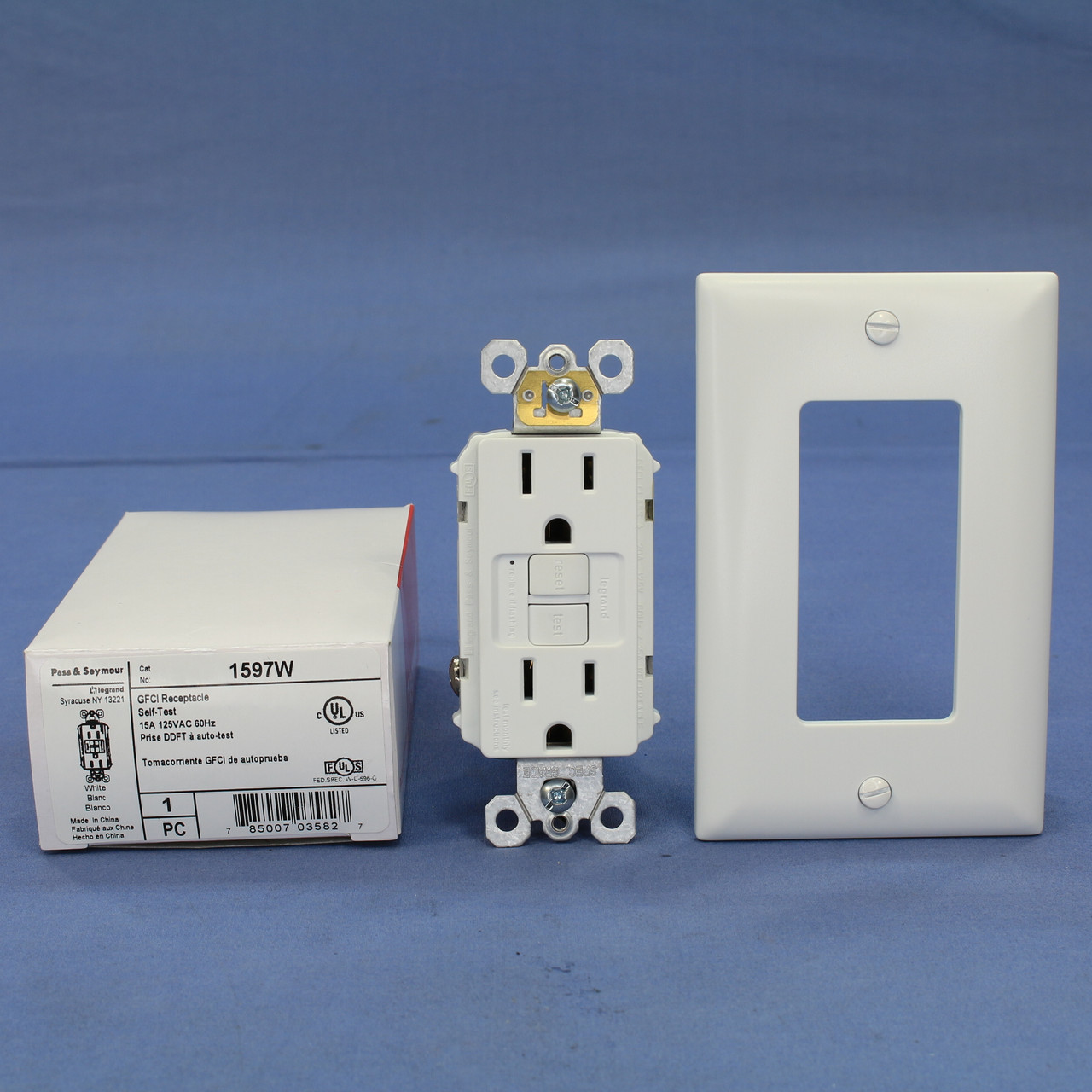 - Pass & Seymour 1597W White Self-Testing GFCI Receptacle Outlet 5-15R 15A 125V