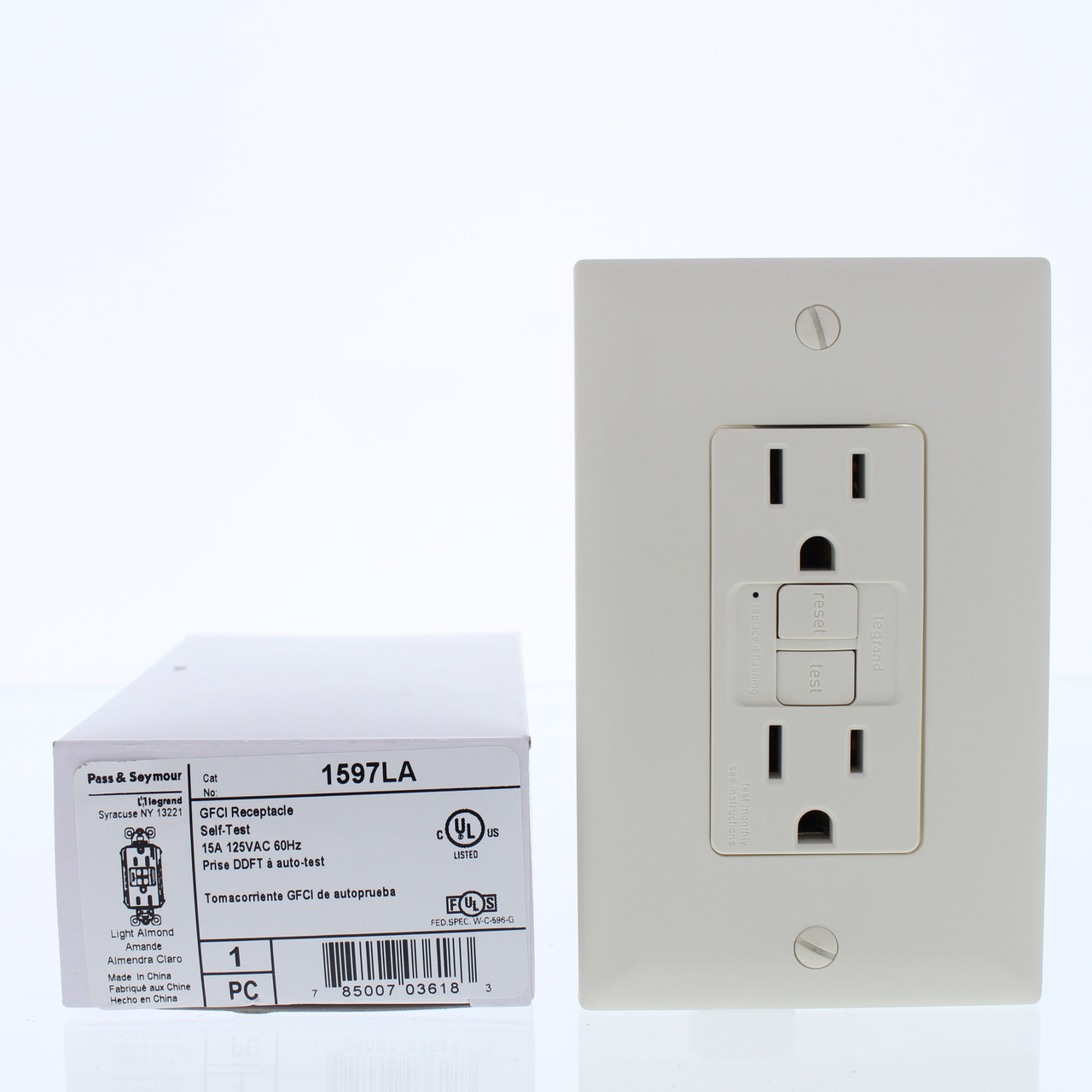 - Pass & Seymour Light Almond Self-Testing GFCI Receptacle Outlet 5-15 15A 1597LA