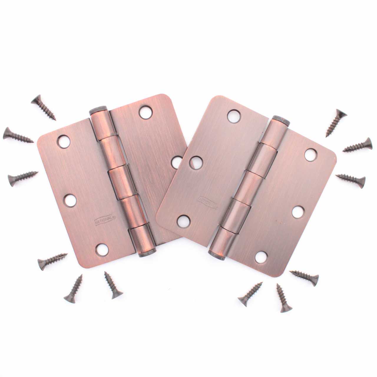2 National Hardware N337-063 3-1/2" antique bronze finish steel hinges. Can be used on either right hand or left hand doors. Designed for mortising one leaf into the butt edge of a door with the other leaf mortised into the edge of a frame. The mortised hinge will give the cleanest final appearance when used on a door for a cabinet or a room. Mortising the hinge into the face frame or jamb and the door creates a tighter fit between the door and the frame. The tighter the fit, the more professional the finished job will appear. The inset cut for the hinge also holds the hardware captive so it does not move under the stress of door movement. Ideal for screen or combination doors and wood lavatory stall doors with wood partitions. National Hardware has been a leading manufacturer of hardware for more than a century. Over the course of the last 160-plus years, National is a name that has become synonymous with quality, innovation, and customer service. A top quality line of door hardware designed for long life and maintenance free operation. Each is individually packaged; packaging may differ from photo. Features include:
