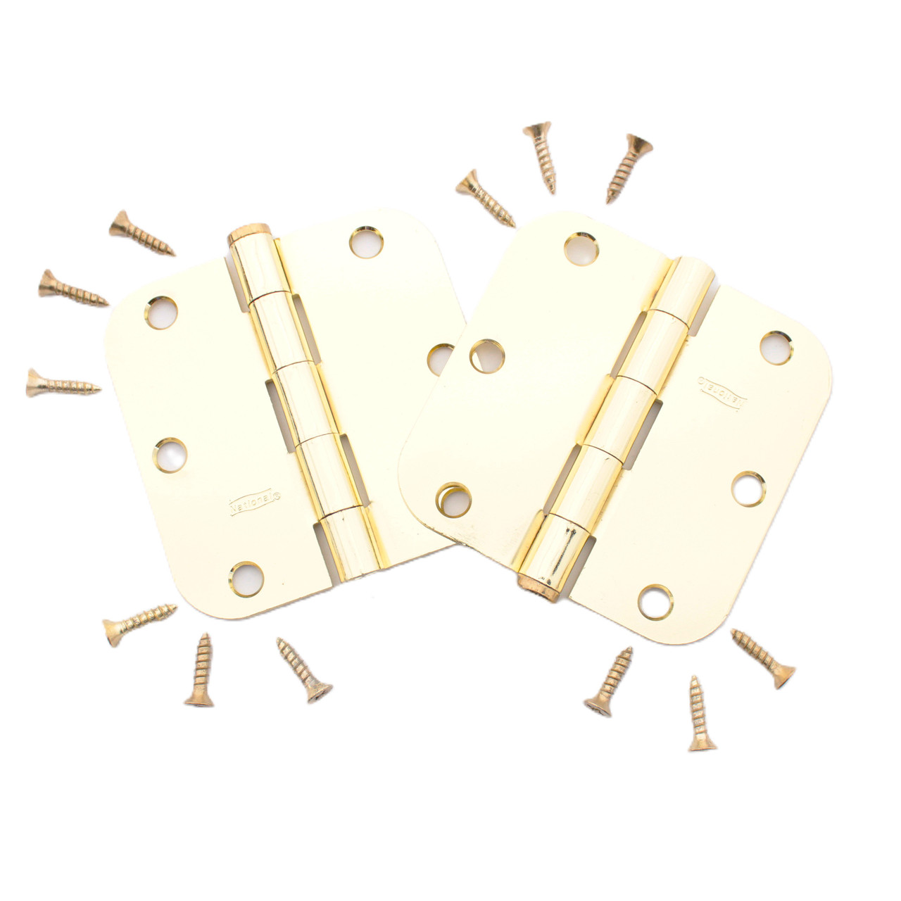 2 National N266-247 Removable Pin Door Hinges Brass Finish Steel 3.5" w/ Screws