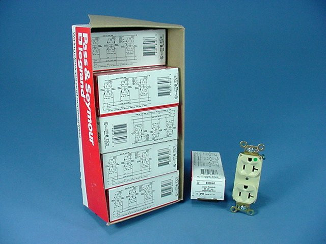 10 Pass and Seymour 8300-HI ivory slim duplex receptacles. Hospital Grade, NEMA 5-20R, 2-pole, 3-wire, self-grounding, back and side wired, rated 20A 125V. Hospital grade devices are top of the line in their category, designed for high-abuse environments such as those found in healthcare facilities. Features include:
