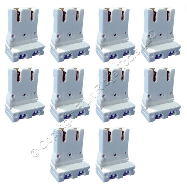 - 10 Leviton Fluorescent Lamp Holders T-8 T-12 Medium Bi-Pin Light Socket 13150UR5