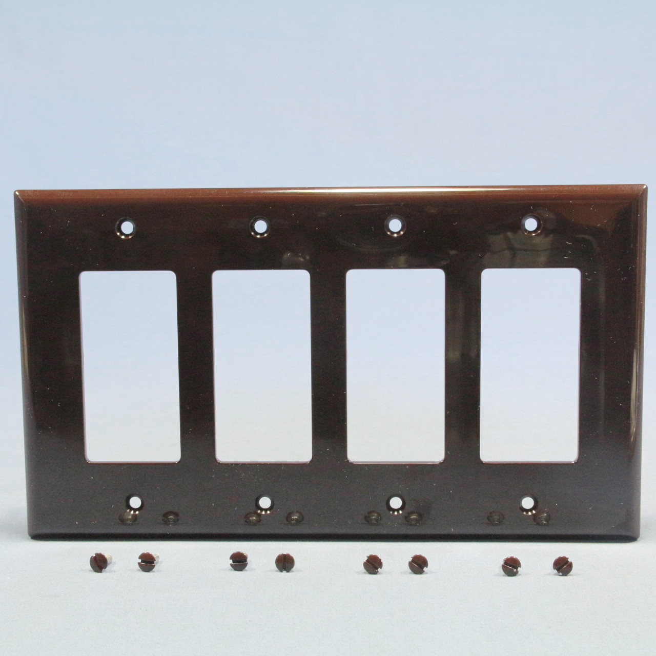 - Cooper Brown 4-Gang Decorator UNBREAKABLE Mid-Size Wallplate Rocker Switch Cover PJ264B