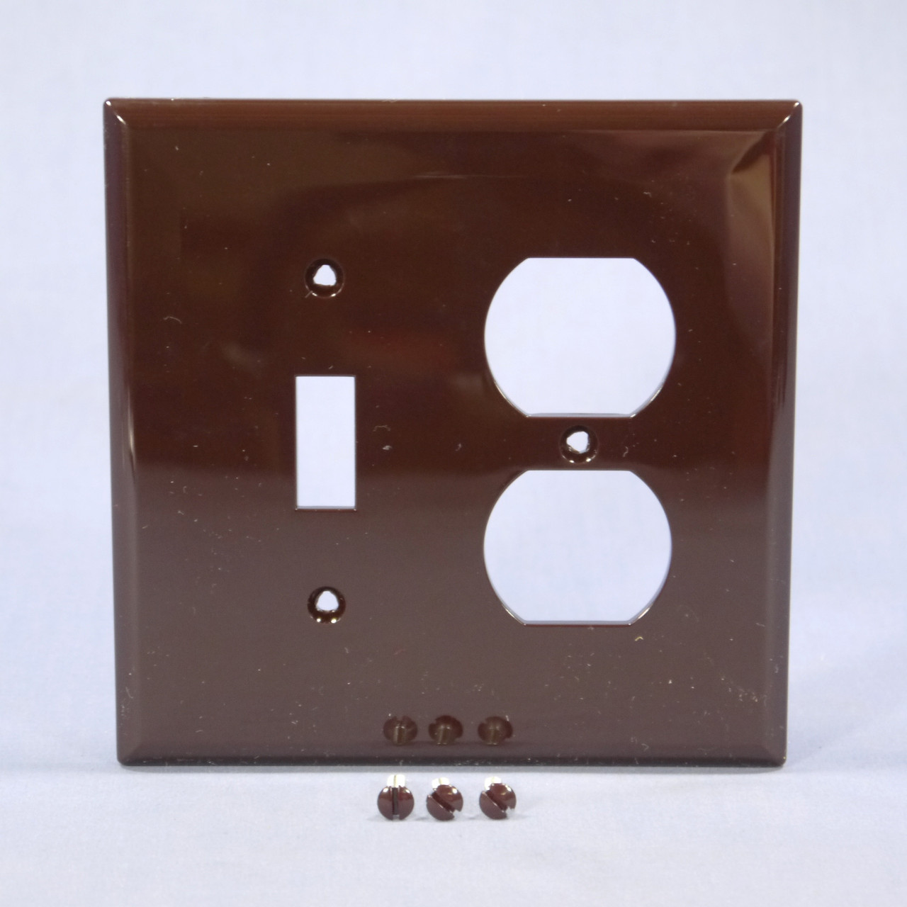 - Cooper Brown Mid-Size UNBREAKABLE Toggle Switch Duplex Outlet Cover Wallplate PJ18B