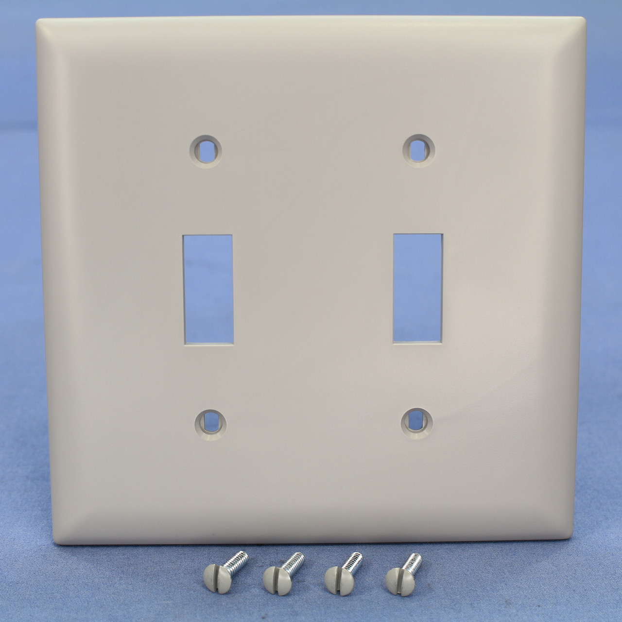 Pass and Seymour Trademaster TP2-GRY gray 2-gang toggle switch nylon wallplate with 2 switch openings. Trademaster Grade, Trademaster size measuring 4.6875"H x 4.75"W, 3/16" higher and wider than standard size plates; made of a tough unbreakable thermoplastic - do not confuse them with regular Residential grade plates that can chip and crack. Made of nylon to be virtually unbreakable - designed to stand up to the heavy abuse of commercial environments. Each is individually packaged; packaging may differ from photos. . Made of nylon to be virtually unbreakable - designed to stand up to the heavy abuse of commercial environments. Each is individually packaged; packaging may differ from photos. Features include:
