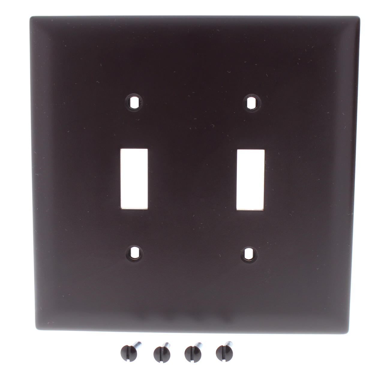 Pass and Seymour TPJ2 brown unbreakable toggle switch cover wallplate. Trademaster® Grade, Jumbo size, measuring 5.0625"h x 3.3125 "w with 2 switch openings, 3/16" higher and wider than Junior-Jumbo wallplates for use with larger size wall boxes and to hide irregularities on the surrounding wall. Each is individually packaged; packaging may differ from photos. Features include: