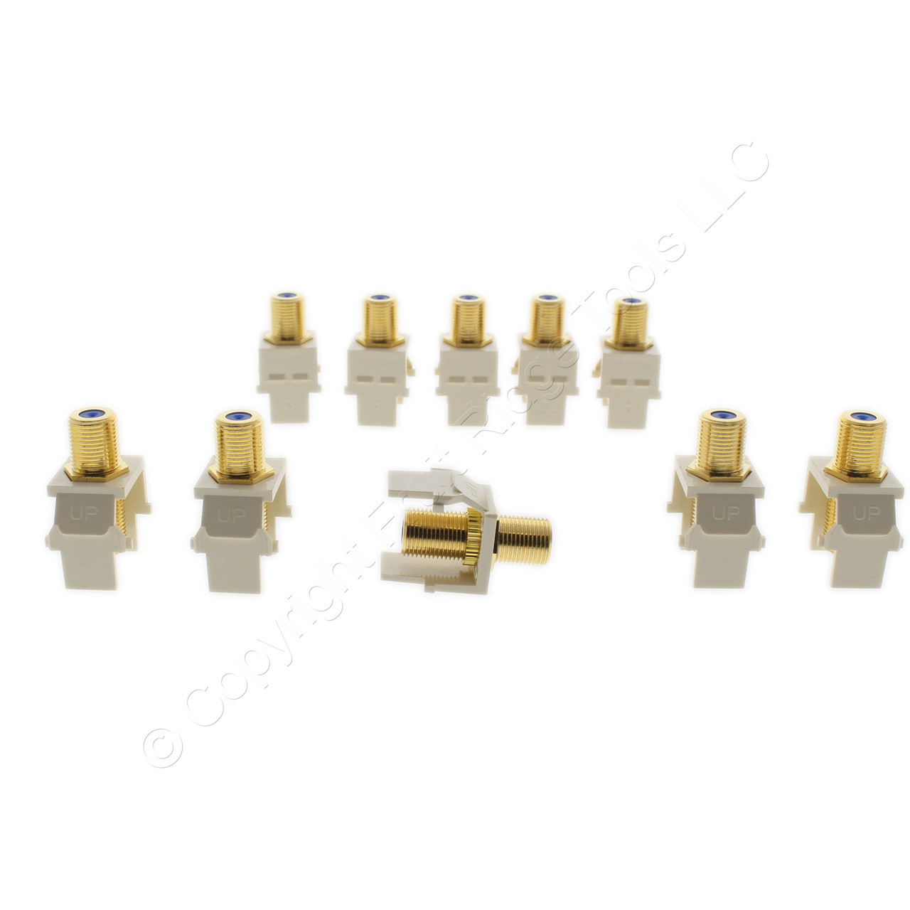- 10pk Leviton Almond Blue Center Quickport Gold Coax Cable Connector Jack 40831-A