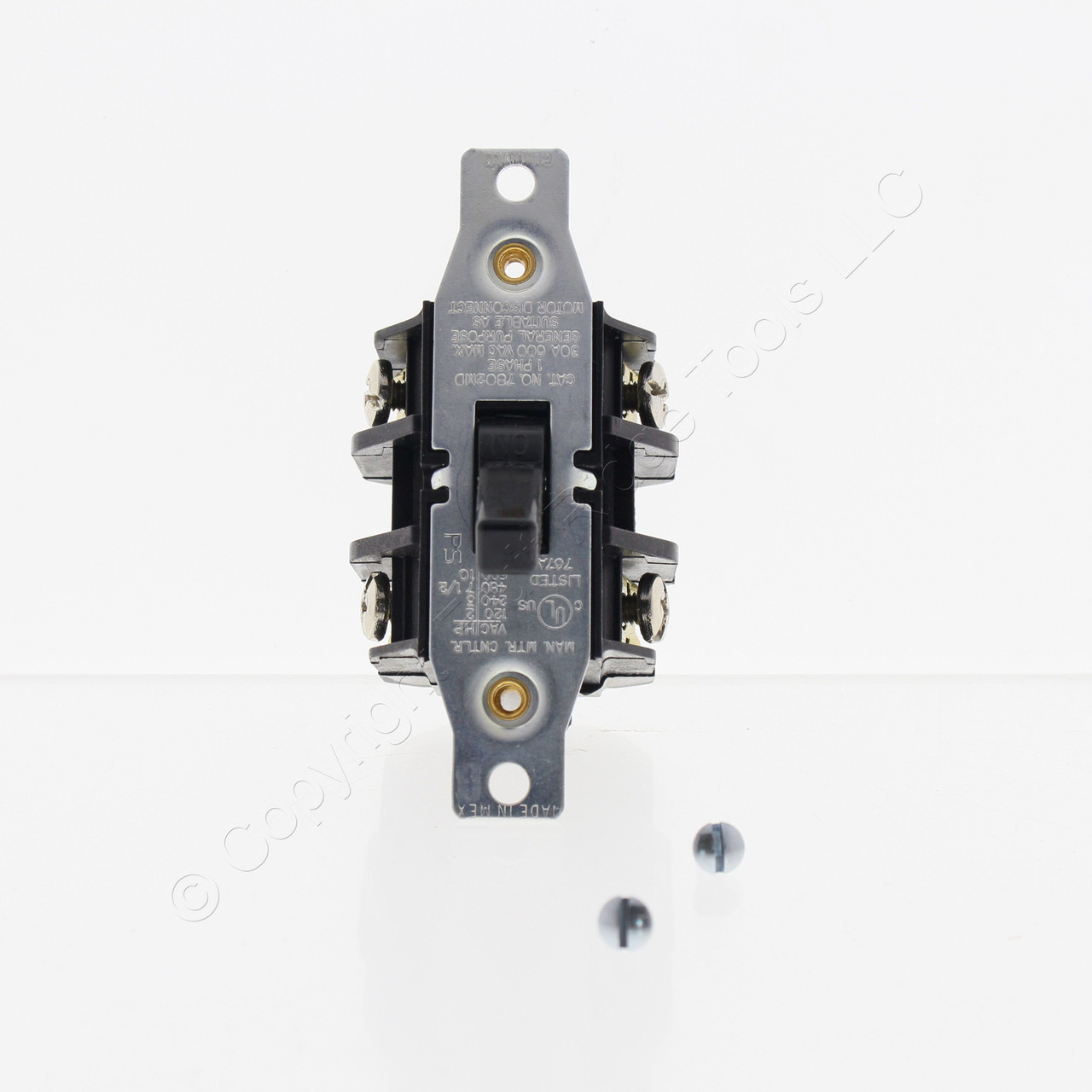 Pass and Seymour/Legrand 7802-MD manual motor starting switch without over load protection. It is Industrial Specificaton Grade, double pole, single phase, back and side wired, non-grounding, 30A 600V. It has the following horsepower ratings: 2.0 HP @ 120V; 5.0 HP @ 240V; 10 HP @ 480V; 15 HP @ 600V. Each is individually packaged; packaging may differ from photos. Features include: