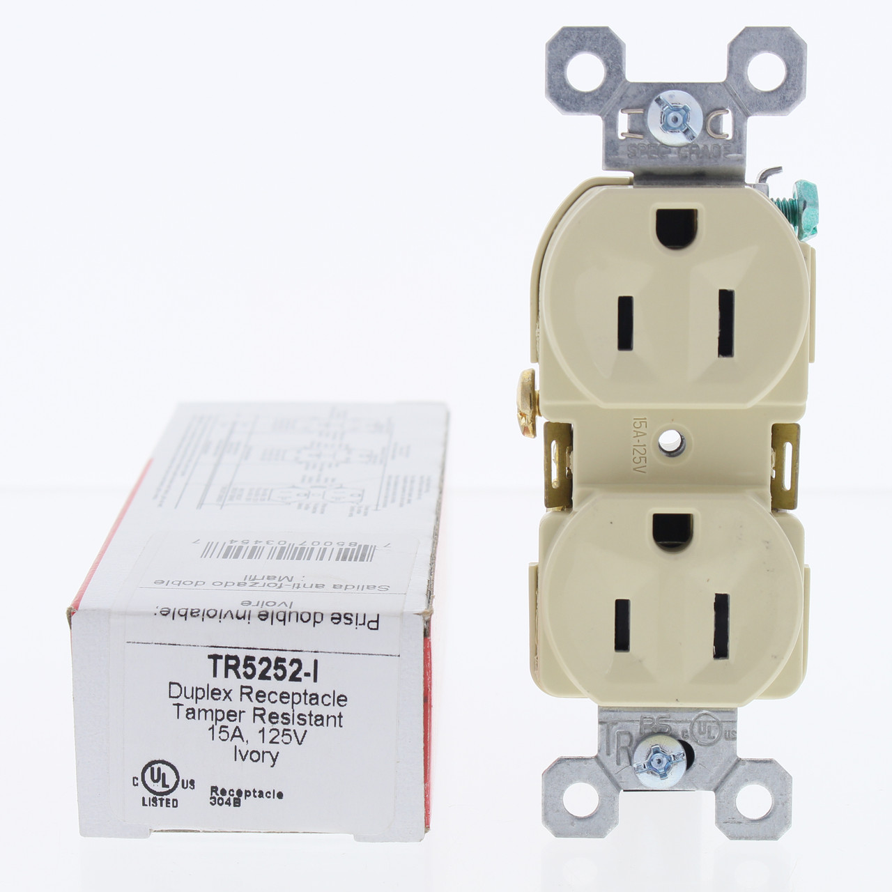 - Pass and Seymour Ivory Tamper Resistant High Impact Resistant Duplex Receptacle Outlet NEMA 5-15R 15A 125V 2P3W TR5252-I