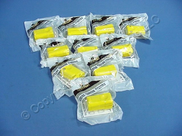 10 Leviton 15659-VY Python straight blade connectors in high visibility yellow. Industrial Specification Grade, NEMA 6-15R, 2-pole, 3-wire, grounding, rated 15A 250V. Each is individually packaged. Features include: