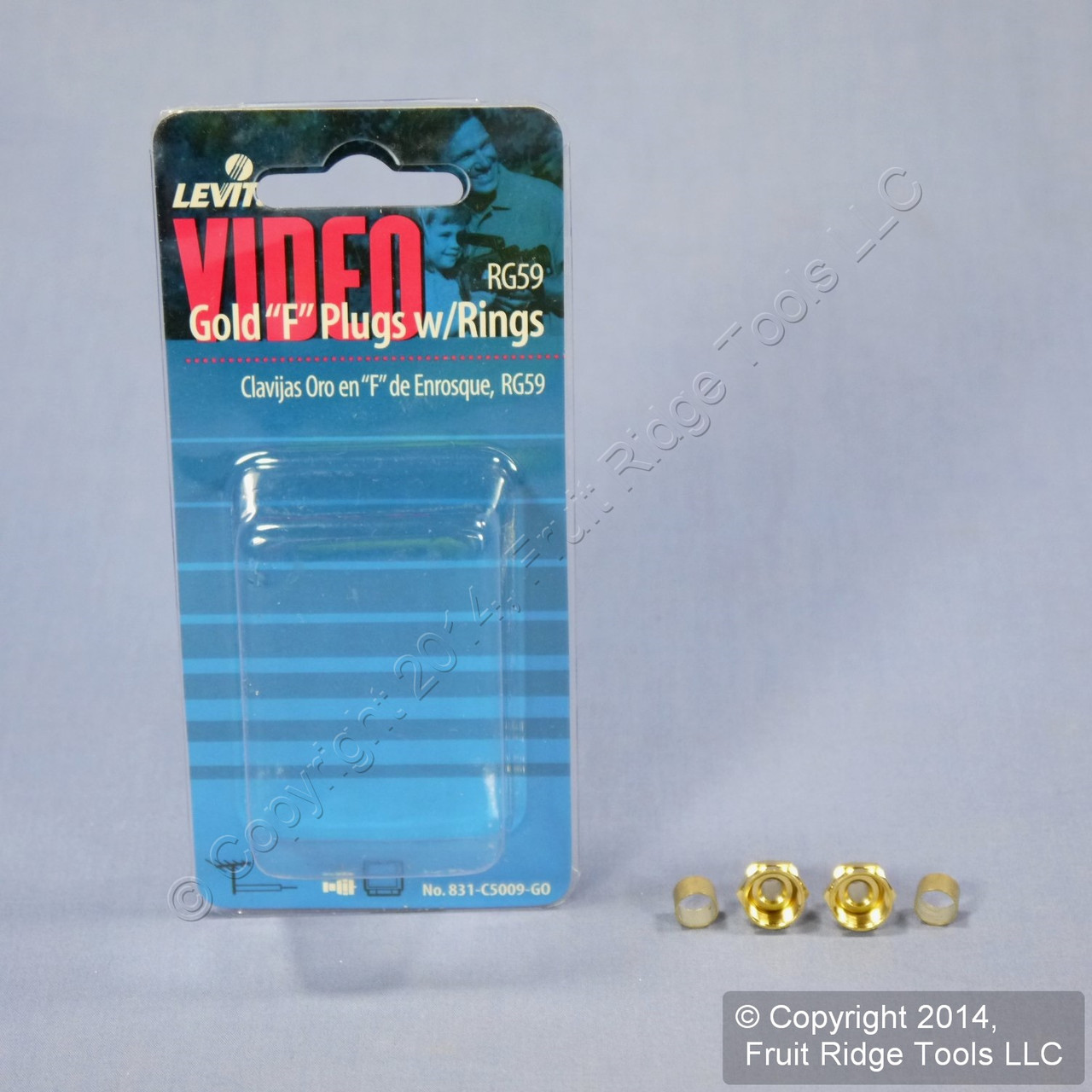 2 Leviton C5009-GO gold crimp on F-connectors. Terminates 75 Ohm coaxial cable with crimp-on male F-connector - a standard cable crimping tool is required. Two-piece design for use on standard RG59 coaxial cable.