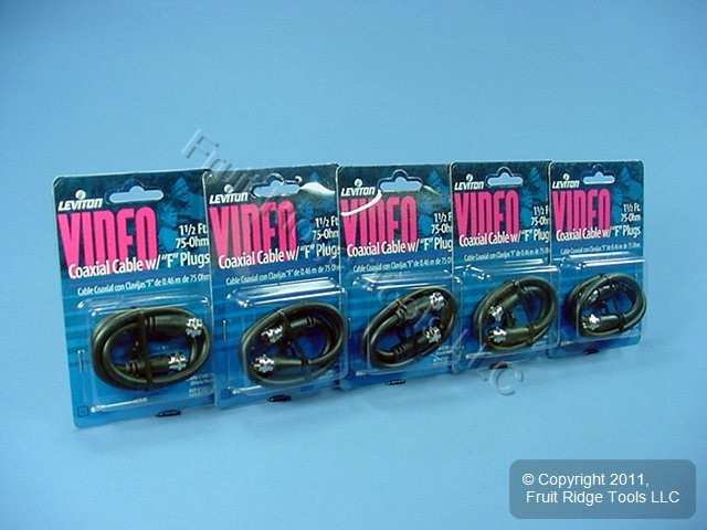 5 Leviton C5851-1E black 18-inch coaxial cables. Great for making short connections between your video components and avoiding snarls of wire at the back of your video cabinet. Features include: