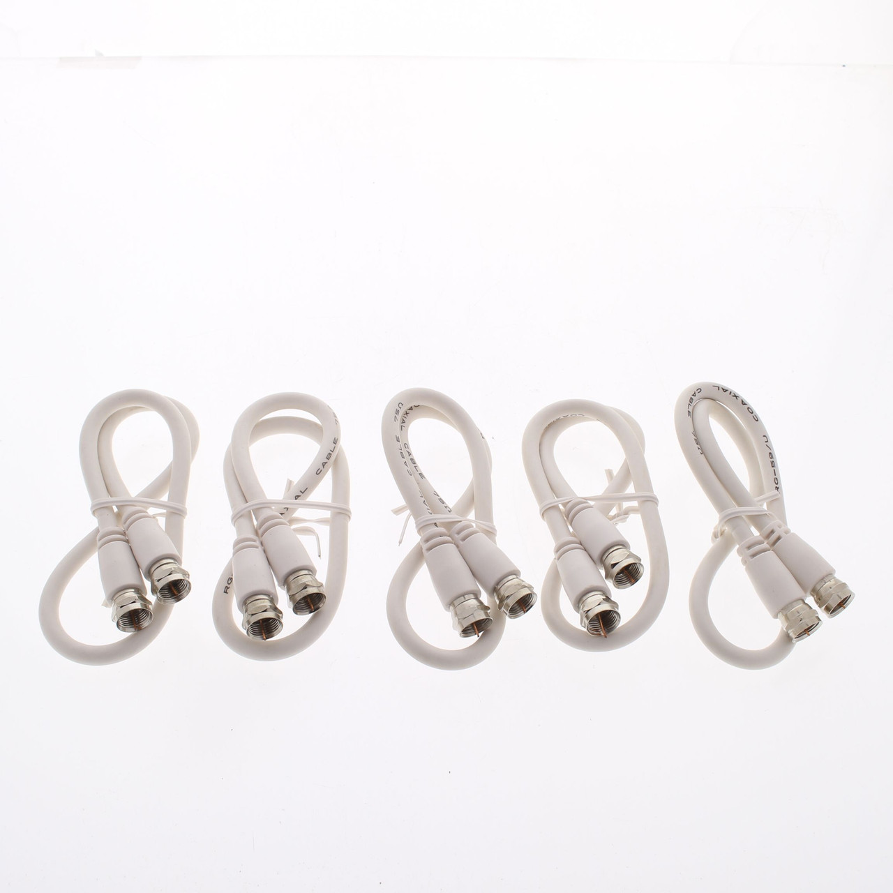 5 Leviton C5851-1W white 18-inch coaxial cables. Great for making short connections between your video components and avoiding snarls of wire at the back of your video cabinet. Features include: