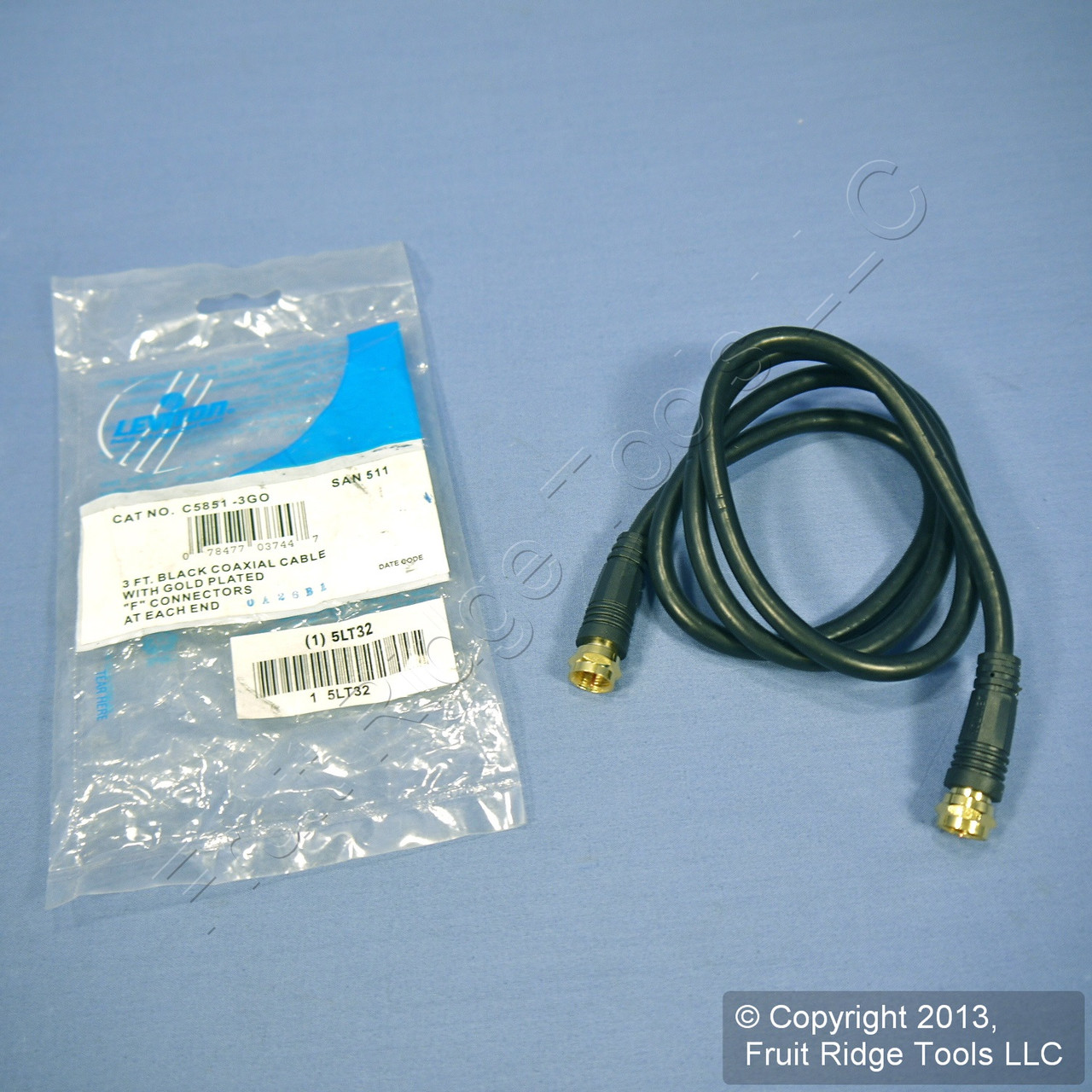 - Leviton Black 3 Ft Coaxial Video Cable w/ GOLD PLUG Ends F-Type RG59 C5851-3GO