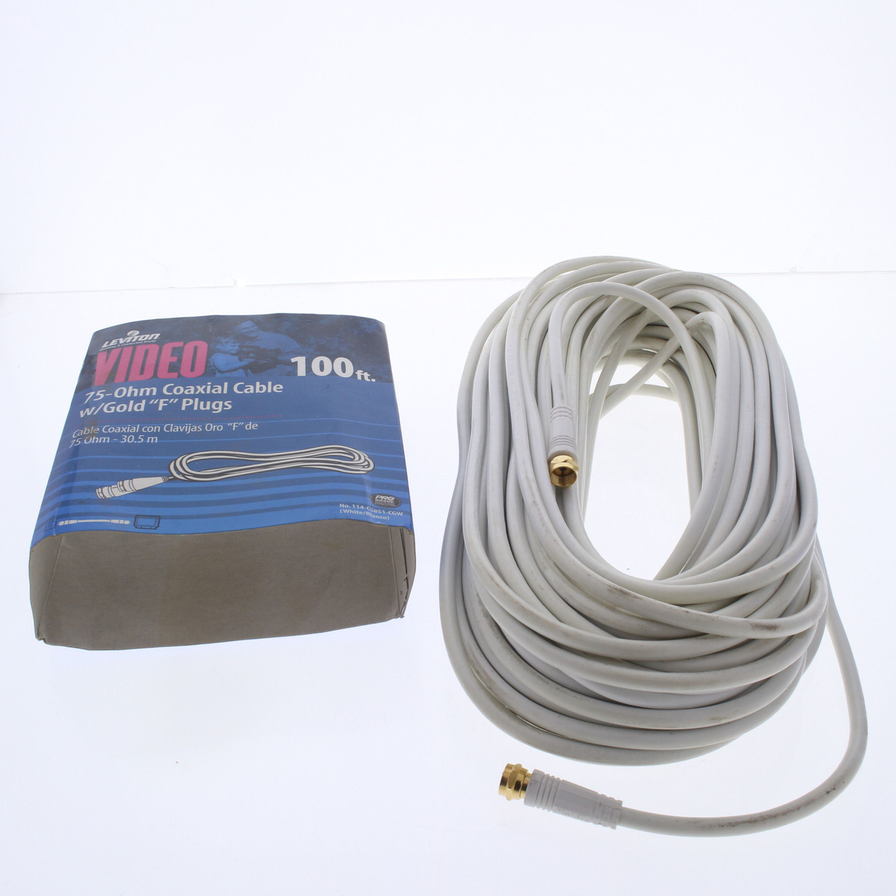 - Leviton White 100' Coaxial Video Cable GOLD PLUGS F-Type C5851-100G
