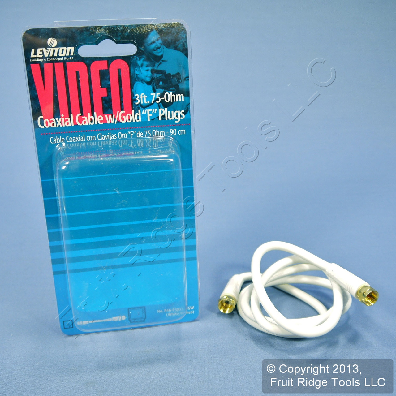 Leviton C5851-3GW white w/ GOLD PLUG Ends F-Type RG59 3-foot coaxial cable. Cable is great for short or temporary cable runs. Features include: