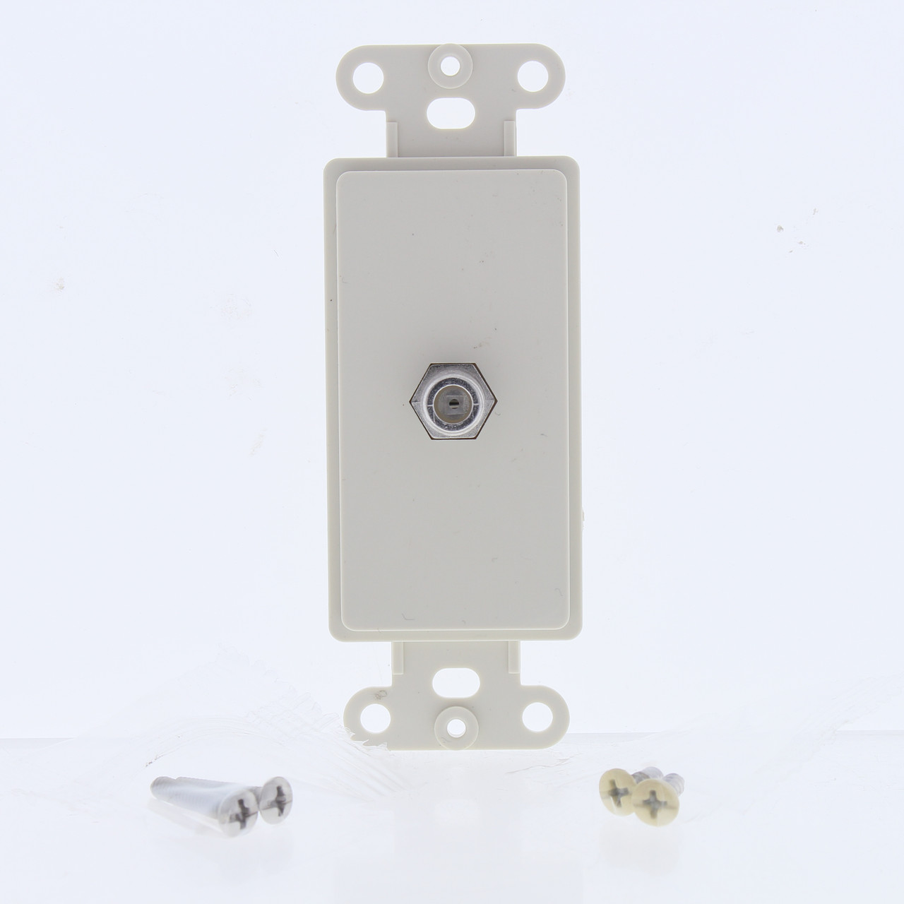 Eaton 2162LA light almond F-type coaxial cable jack insert. Residential grade insert that fits standard Decorator and GFCI openings. Fits standard cable TV 75-Ohm connectors. Each is individually bagged with mounting screws. Includes matching wallplate - normally sold separately by other sellers.