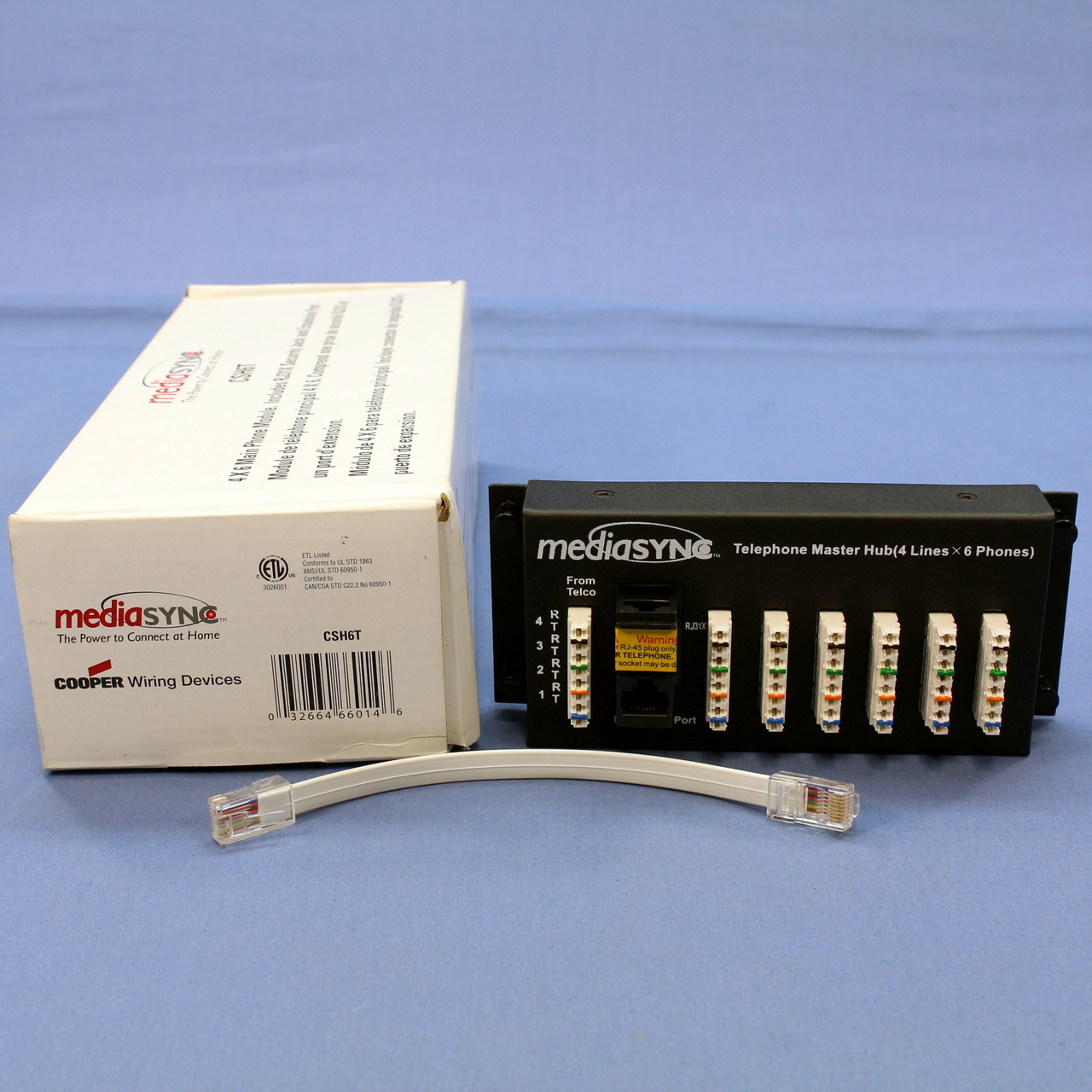 Cooper Wiring Devices Open House CSH6T 4x6 Telephone Main Module. Shares 4 phone lines to 6 locations. Installs in Cooper's standard wiring panel or any other Open House compatible panel (will not fit a Leviton panel unless you modify it by drilling holes, etc.). Features include: