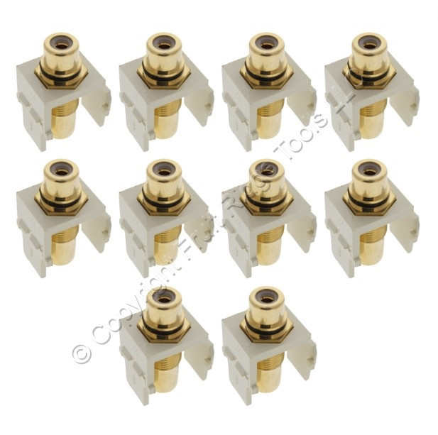 - 10 Leviton Almond Quickport Stereo RCA Jacks Gold White Stripe 40830-BAE
