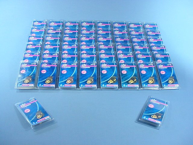 50 Leviton 40831-BE black Quickport coaxial cable jacks. F-type connector for use with standard cable connectors. Gold plated for a superior connection with TV, VCR, DVD, Satellite, and home theater applications. Each is individually packaged; packaging may differ from photo.