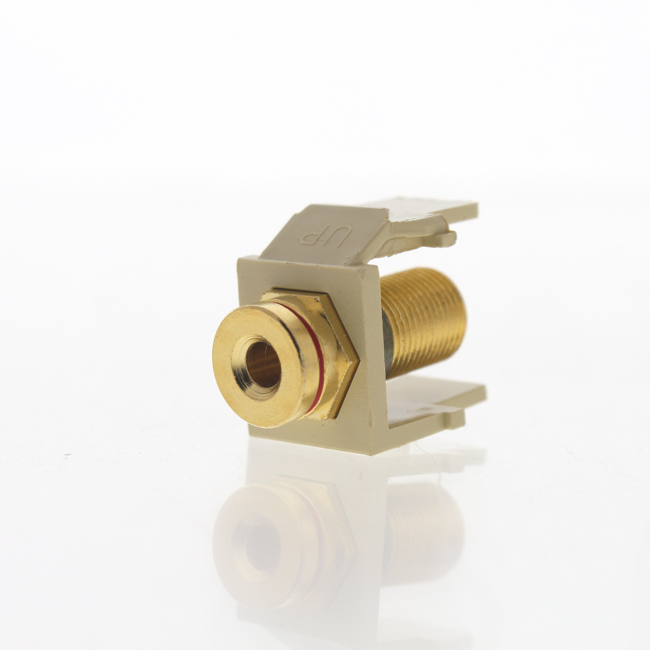 Leviton #40837-BIR ivory Quickport banana jack. Gold plated with a red stripe. For use with Quickport wallplates and standard banana jack speaker plugs.