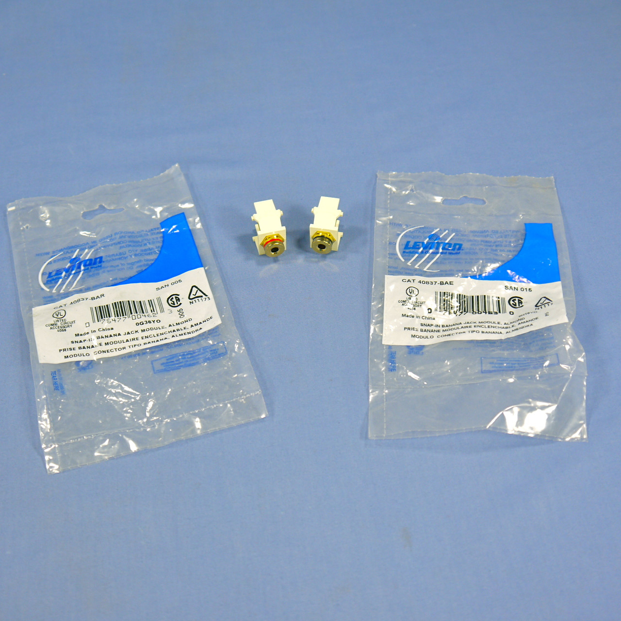 - Leviton Quickport Banana Jacks Stereo Red/Black Stripe Audio Almond 40837-A PAIR