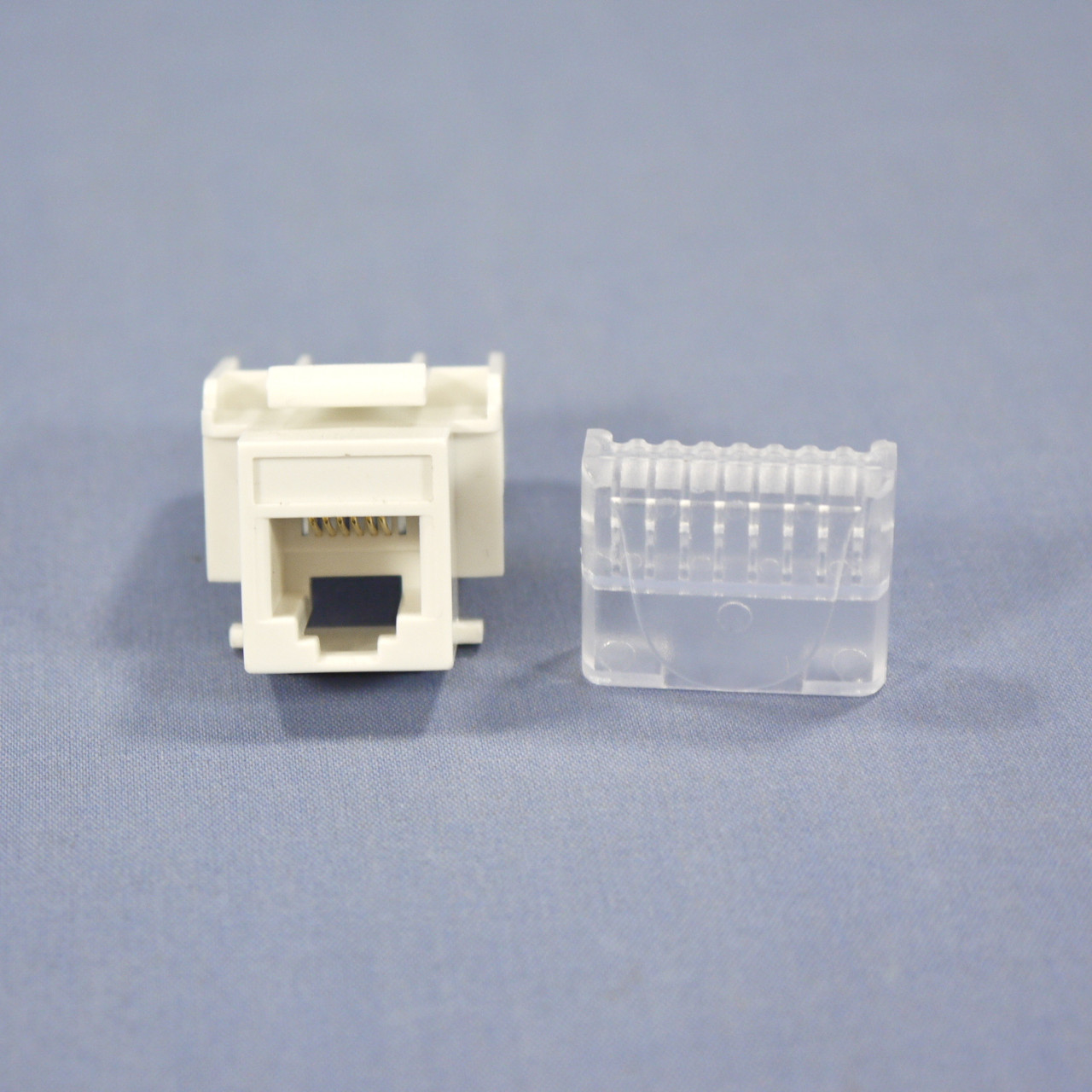Cooper 5511-3EW white modular Cat 3e voice grade telephone/data jack. 6-position, 6-conductor jack; fits standard residential telephone connectors (RJ11 or RJ14). For use with Cooper Flush Mount 110 Style Jack Wallplates and Mounting Boxes. Each is individually packaged; packaging may differ from photo. Features include: