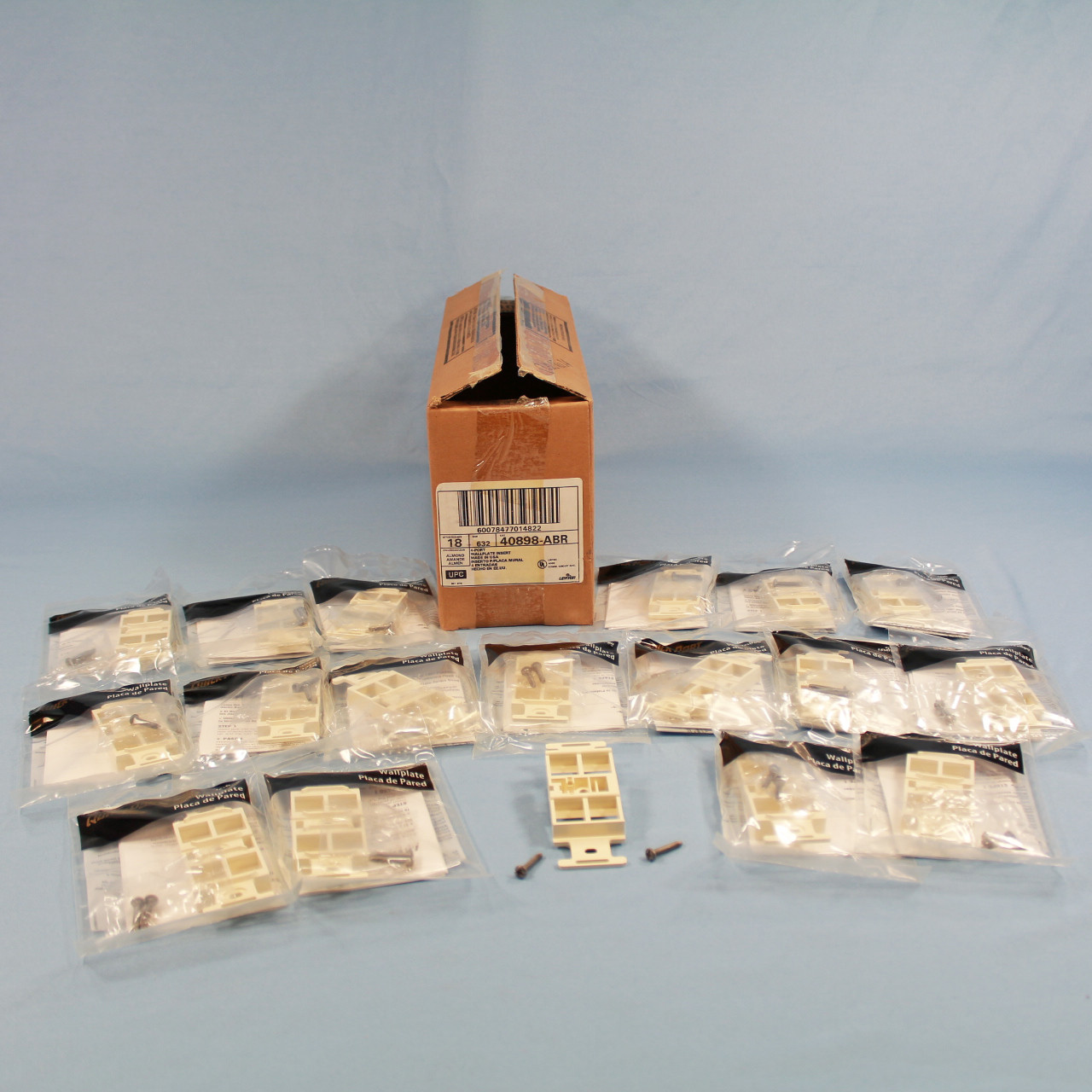 18 Leviton 40898-ABR almond 4-port Quickport mounting platforms (also known as a Quad 106 and sold under Leviton part numbers 41087-4AP and 40898-A). Please note that we include a matching wallplate - this is normally sold separately from other vendors. Flush mounted wallplate accepts all QuickPort snap-in modules used for audio, video, and telecommunications. Designed to match the look of conventional duplex receptacles for a consistent appearance throughout the installation.