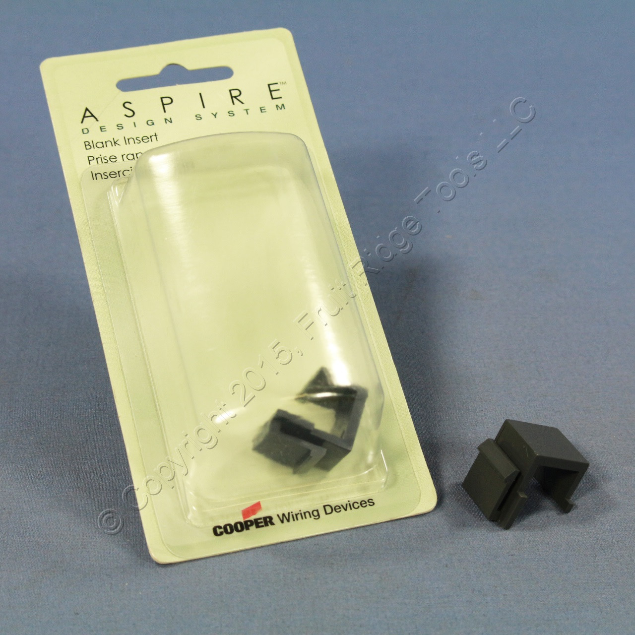 2 Cooper ASPIRE 9558SG silver granite modular snap-in solid blank face inserts. Aspire's Silver Granite is a two tone color scheme in which the device is dark gray and the surrounding wallplate is a complementing light gray to add a more sophisticated look to your walls than conventional fixtures. Designed to fill blank ports so that they may be used for future expansion. ASPIRE communication outlets prepare any home or small office for connectivity to phone, video, TV and network/internet services. Combine ASPIRE with Cooper Wiring Devices' MediaSyncTM line of Home Networking and Control Products for a well connected home. Each is individually packaged; packaging may differ from photo.