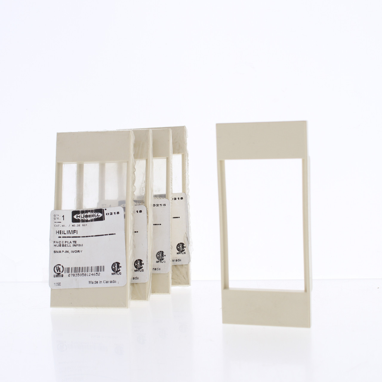 5 Hubbell HBLIMFI ivory 3-unit iStation faceplates. Used to incorporate InfineStation devices into Hubbell netSELECT/iStation systems. Outer dimensions: 2"w x 4.5"h. PVC construction. 3 unit capacity.