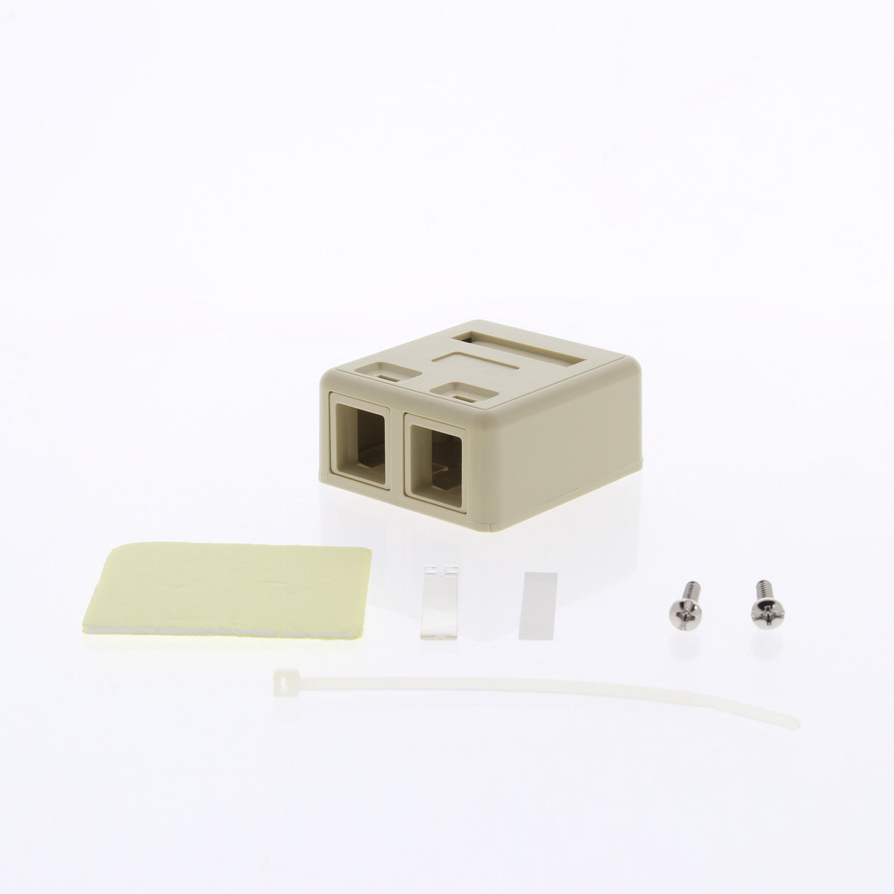 Eagle 5532V ivory 2-port surface mount office box. Box accepts 110 style modular jacks, blank face, ST-style, BNC, RCA and F connector inserts.