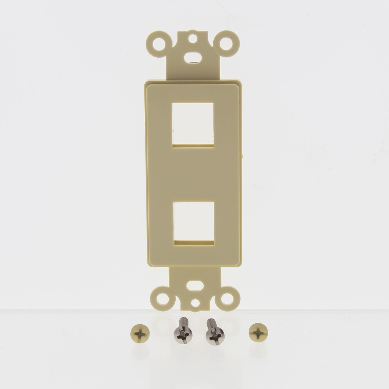 Eaton 5522-5EV ivory 2-port decorator mounting strap platform insert along with a matching wallplate. Decorator styling to match surrounding fixtures. Can be used with standard jacks, F-connector, audio style, and blank face inserts for your audio, video, telecom, and networking needs. Please note that we include a matching wallplate - normally sold separately by other vendors.