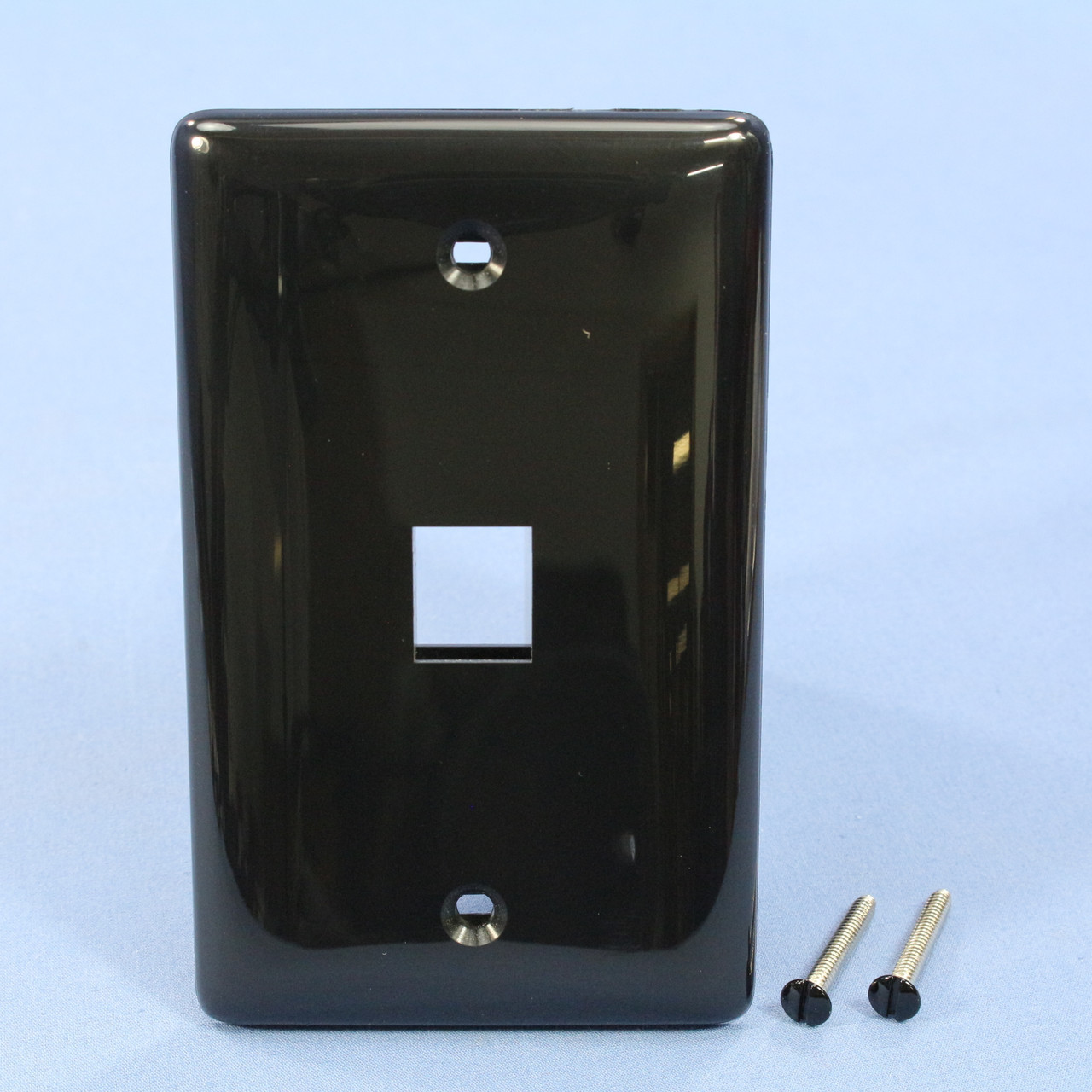 Hubbell NSP11BK black 1-port multimedia wallplate. Flush mounted design that accepts all Hubbell keystone snap-in modules for your audio, video, and telecommunications needs. Can be mounted to recessed wall boxes and brackets for a low profile look; also attaches to surface mount wiring boxes. Includes color matching mounting screws. Packaging may vary.