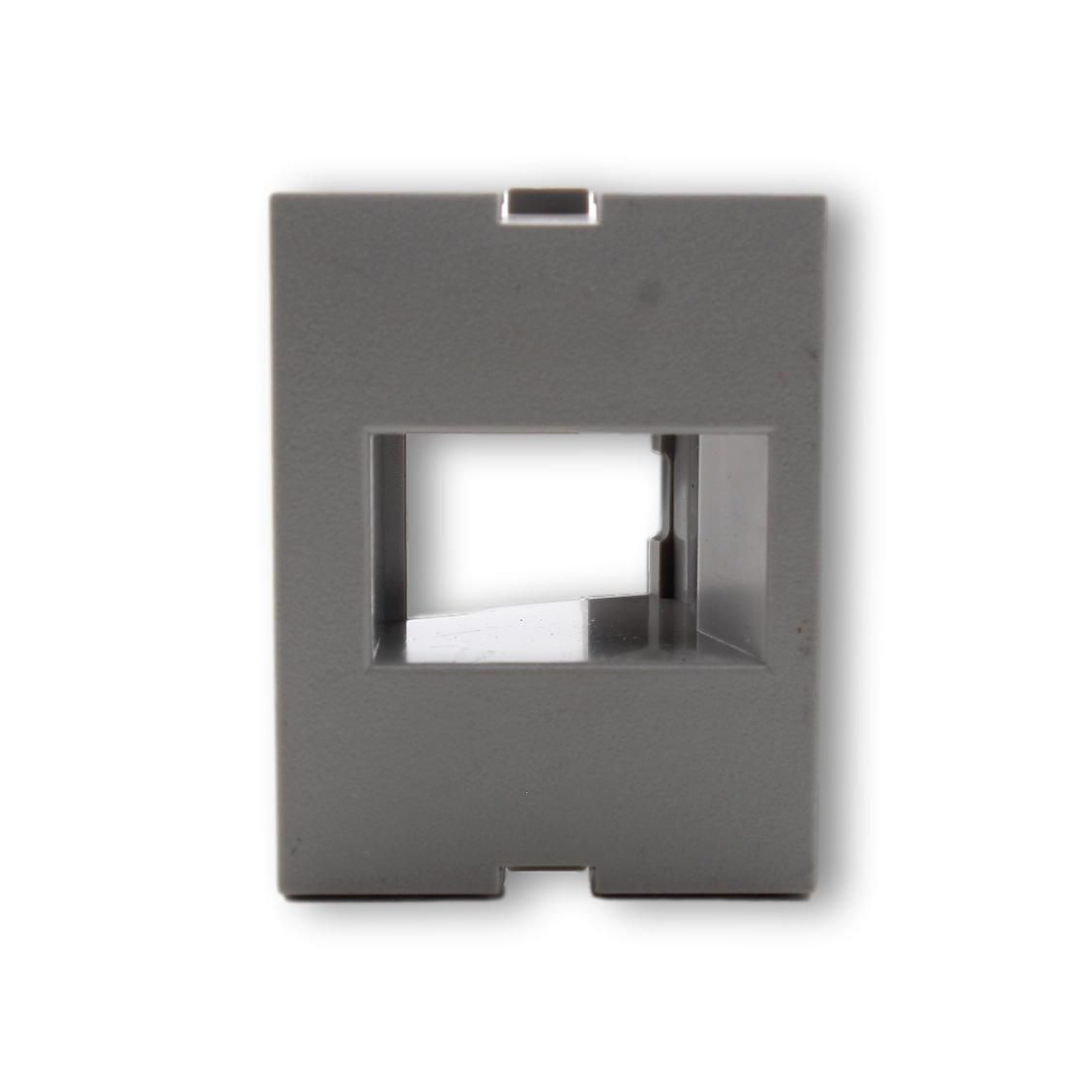 Hubbell IM1IA15EI gray iStation 1-port recessed keystone module. Made to fit in Hubbell iStation modular wallplate frames to create custom configured wallplates for data and video applications; adapter plate is 1-1/2 units high (regular iStation frame holds 3 units). Fits Hubbell and similar keystone jacks. Measures 1.432"h x 1.85"w.