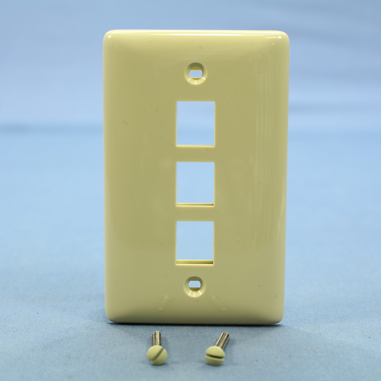 Hubbell NSP13I ivory 3-port multimedia wallplate. Flush mounted design that accepts all Hubbell keystone snap-in modules for your audio, video, and telecommunications needs. Can be mounted to recessed wall boxes and brackets for a low profile look; also attaches to surface mount wiring boxes. Includes color matching mounting screws. Packaging may vary.