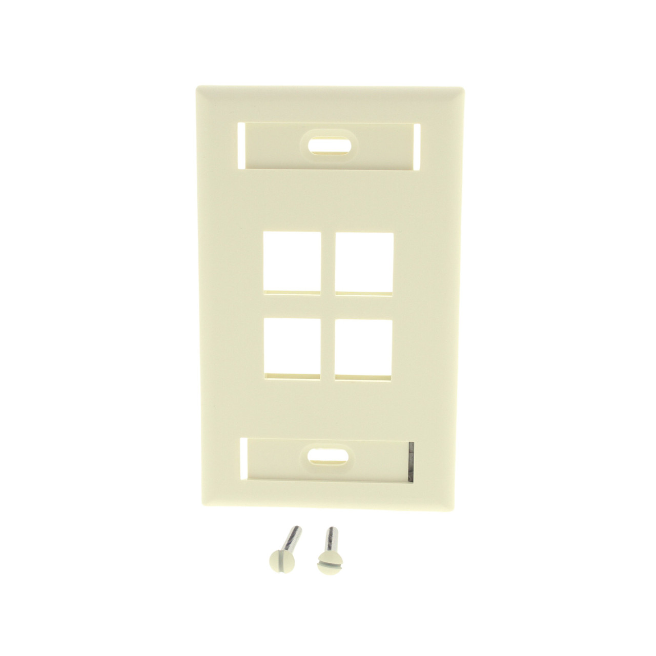 - Leviton Almond Quickport 4-Port ID Window Flush Wallplate 1-Gang Cover High-Impact Plastic 42080-4AS